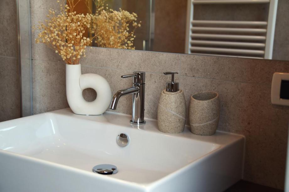Die Ferienwohnung "Mendel" ist mit Wohnküche, Schlafzimmer, Badezimmer mit Regendusche und Balkon geräumig und komfortabel ausgestattet.